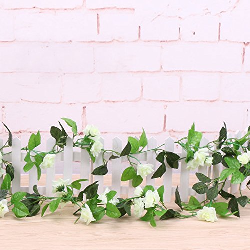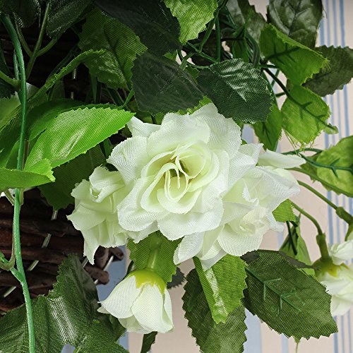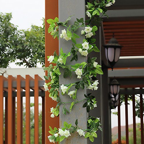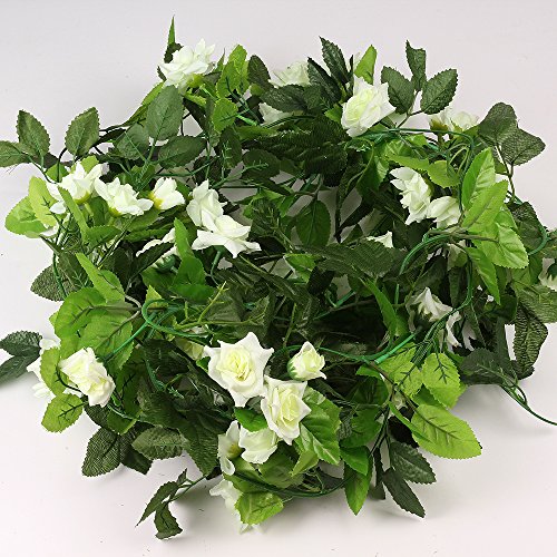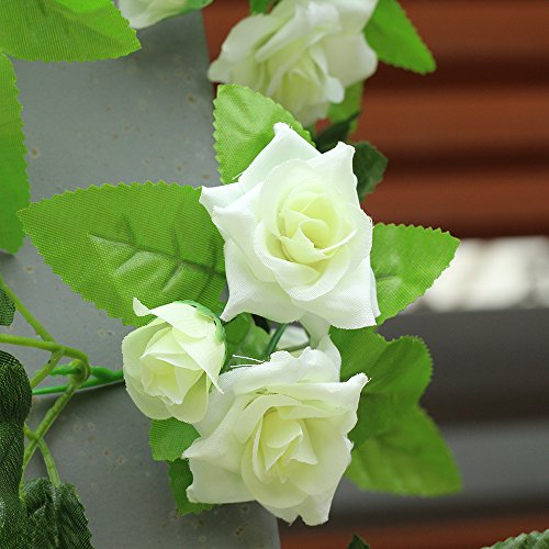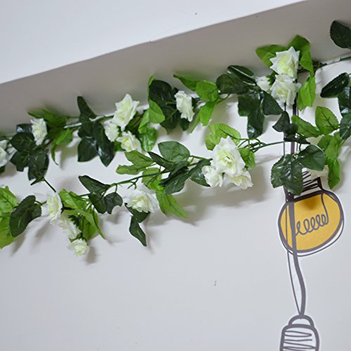 96 Inch Rose Vine Silk Flower Garland Artificial Flowers Plants Leaf Vine For Home Wedding Decoration Pack Of 3 (White)