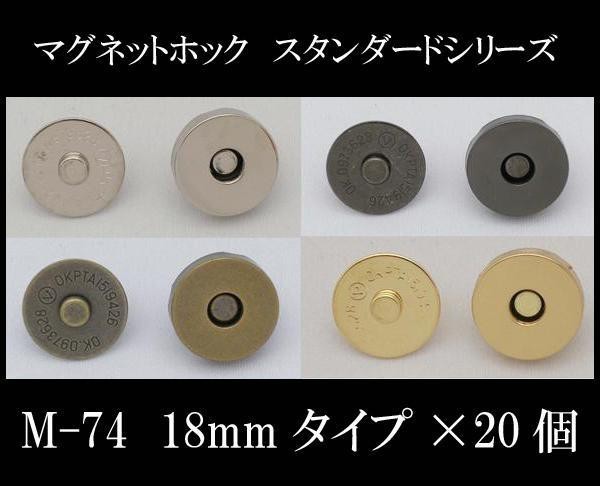 生地に差し込むタイプのマグネットホックです。スタンダードタイプ。 製造国:中国 素材・材質:鉄・真鍮・マグネット(フェライト) 商品サイズ:直径18.5mm×厚み5mm 仕様:差し込みタイプ セット内容:マグネットホック18mm×20個 ※サプライヤー直送品  ご注文後3~4営業日後の出荷となります【商品名】マグネットホック スタンダードシリーズ M-74 18mmタイプ×20個 アンティーク