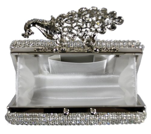 -. Brand : Chicastic -. Department : womens -. Feature : Hard box with decoration on both sides. / Detachable Chain Attached / Measures - 6.5" length x 4" height x 2" width / **Official CHICASTIC product made and sold exclusively by Chicastic.** Products sold by other sellers may vary. Please check seller before checking out. -. Model : CHIC10058 -. ProductGroup : Shoes -. ProductTypeName : HANDBAG -. Title : Chicastic Crystal Stud Peacock Motif Hard Box Evening Clutch Bag