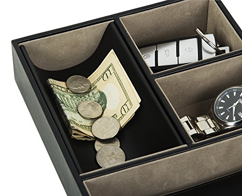 JackCubeDesign Valet Tray Multi Leather, Desk or Dresser Organizer, Catch-all for Keys, Phone, Wallet, Coin, Jewelry and Nightstand(Black, 10.6 x 7.2 x 1.9 inches) - MK233A