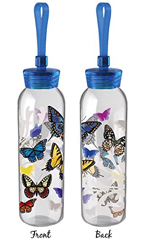 Cypress Home Flight of the Butterflies Double Sided Decal Glass Water Bottle, 18 ounces