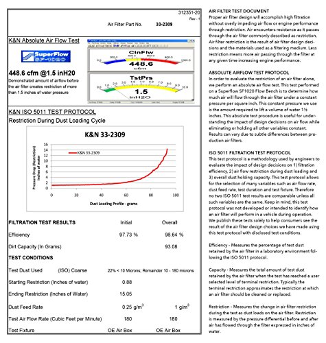-. Binding : Automotive -. Brand : K&N -. Department : unisex-adult -. EAN : 0024844113221 -. Feature : Designed to boost horsepower and rate of acceleration / Can be cleaned and used again / High air flow with exceptional filtration / Lasts up to 50,000 miles before cleaning is required depending on driving conditions / Works with original equipment manufacturer vehicle electronics -. IsAutographed : 0 -. IsMemorabilia : 0 -. Label : K&N Engineering -. Manufacturer : K&N Engineering -. ManufacturerPartsWarrantyDescription : Parts -. Model : 33-2309 -. MPN : 33-2309 -. NumberOfItems : 1 -. PackageQuantity : 1 -. PartNumber : 33-2309 -. ProductGroup : Automotive Parts and Accessories -. ProductTypeName : AUTO_PART -. Publisher : K&N Engineering -. ReleaseDate : 2005-08-15 -. Studio : K&N Engineering -. Title : K&N 33-2309 High Performance Replacement Air Filter -. UPC : 024844113221