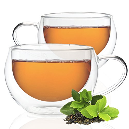 -. Title : Tea Branch Tea Cups, Double-Wall Insulated Glass Cups, Tea Mugs, Borosilicate Glass, 6.5 Ounces, 200 milliliter Each, Model "Let's Be Clear" (Set of 2)