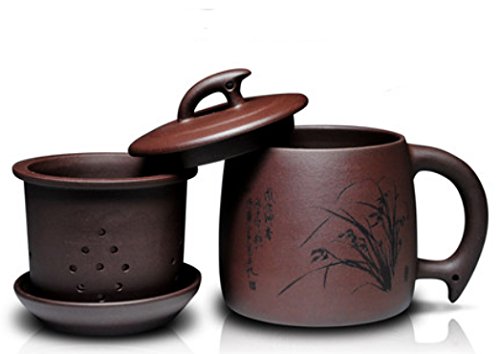 -. Title : Chinese Handmade Yixing Zisha Purple Clay Tea Mug with Infuser and Saucer, 14 oz.