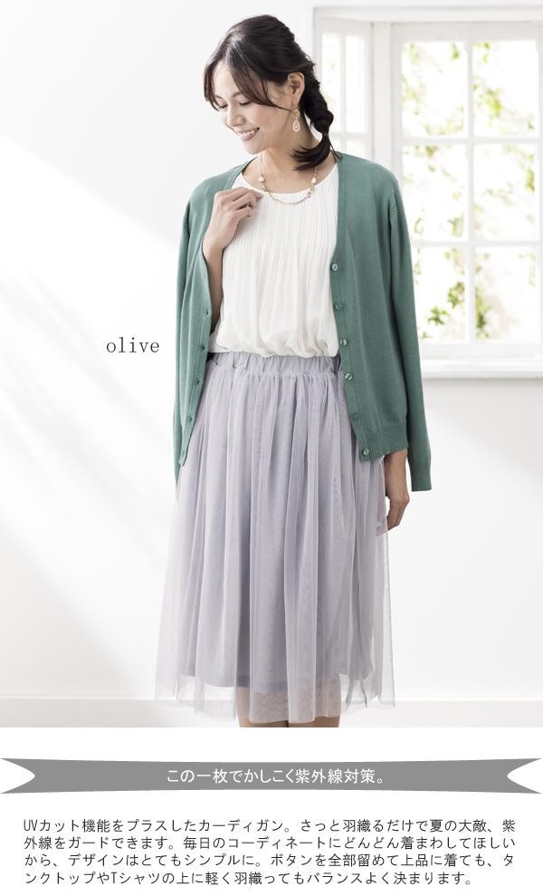 UVカット機能をプラスしたカーディガン。さっと羽織るだけで夏の大敵、紫外線をガードできます。毎日のコーディネートにどんどん着まわしてほしいから、デザインはとてもシンプルに。ボタンを全部留めて上品に着ても、タンクトップやTシャツの上に軽く羽織ってもバランスよく決まります。着こなしの主役になる、ビビッドカラーを中心に揃えました。 |
