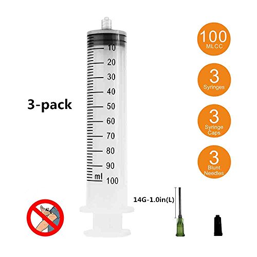 3 Pack 100ml Syringes with 14Gx1.0'' Blunt Tip Fill Needles and Storage Caps(Luer Lock)