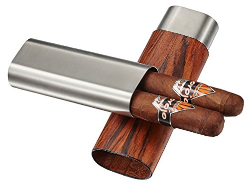 Visol Products VCASE794 Ryland Dark Exotic Wood & Steel Double Cigar Case