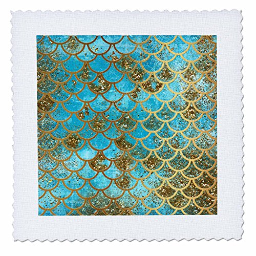 3dRose Sparkling Teal Luxury Elegant Mermaid Scales Glitter Effect Art Print Quilt Square, 18 x 18"