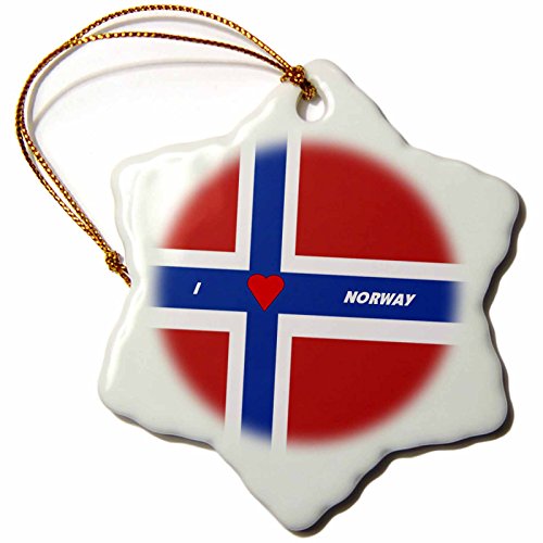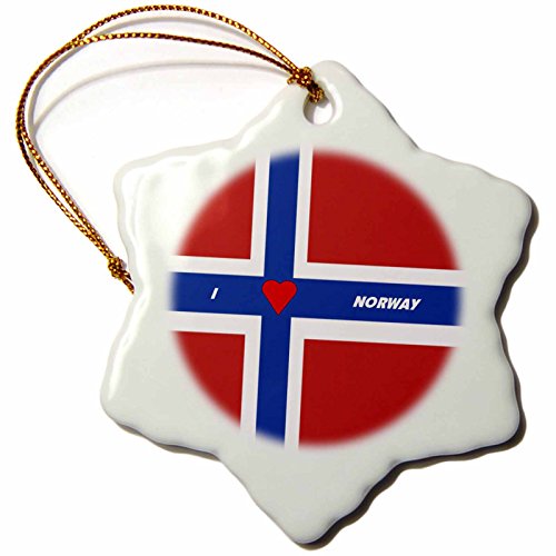 3dRose orn_51522_1 I Love Norway-Snowflake Ornament, Porcelain, 3-Inch