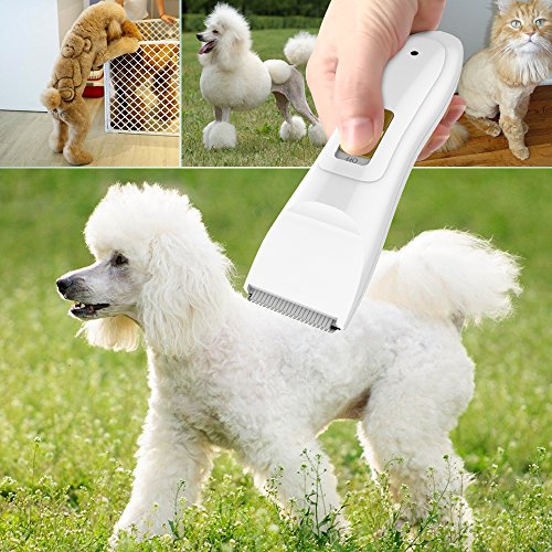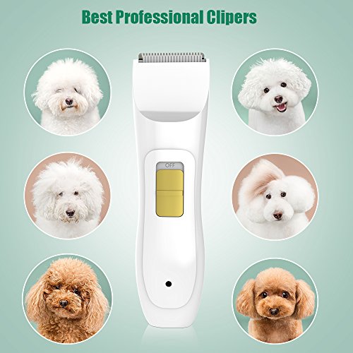 BENGOO Professional Dog Grooming Kit Cat Pet Hair Trimmer Clippers Razor Blades Rechargeable batteries Cordless Electric with Combs, Adapter, Clean Brush for Large Medium Small Animals - White