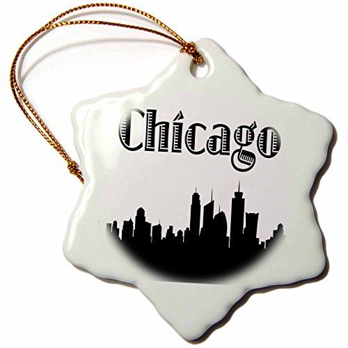 3dRose orn_157374_1 Chicago City Skyline Snowflake Porcelain Ornament, 3-Inch