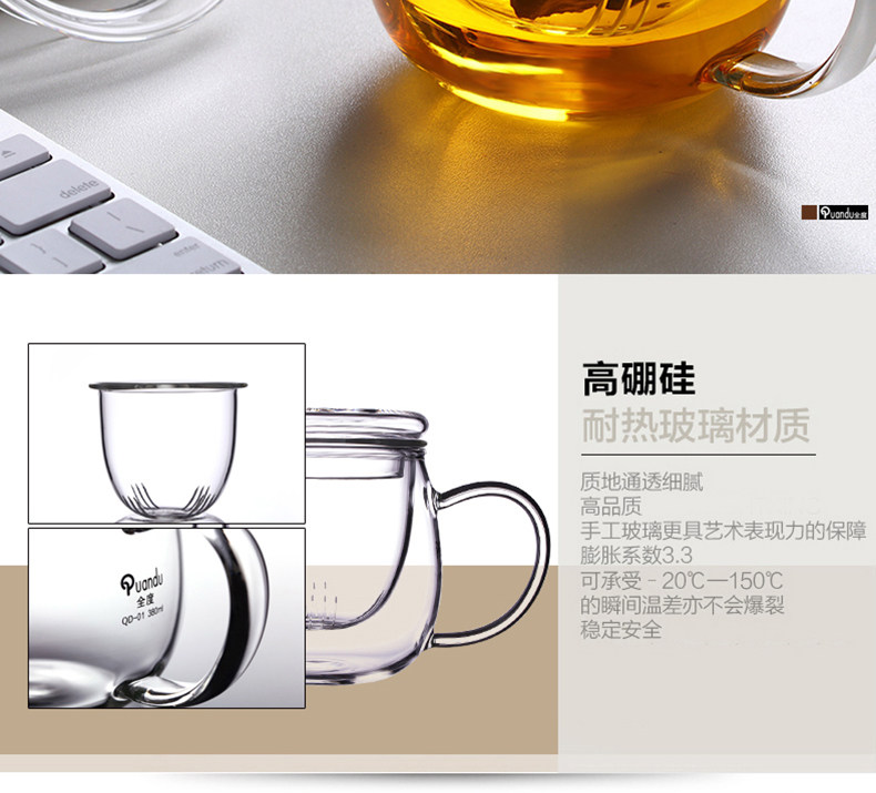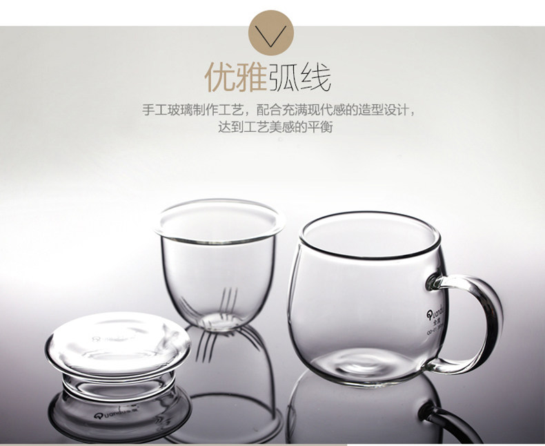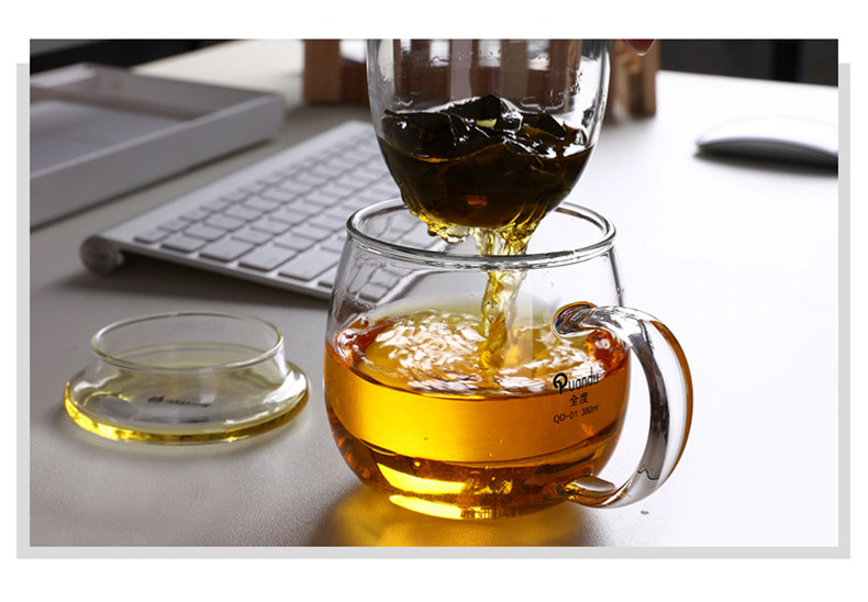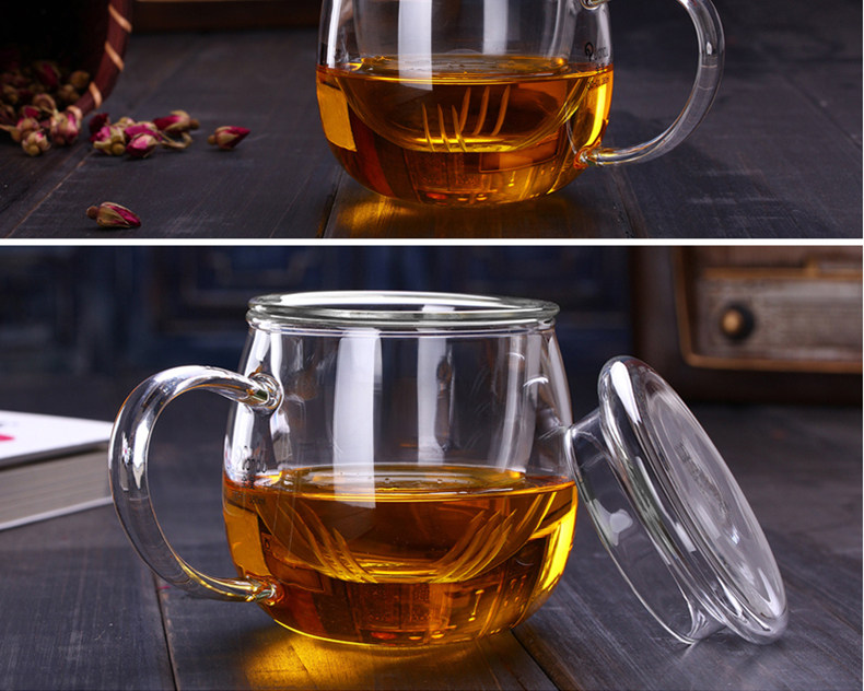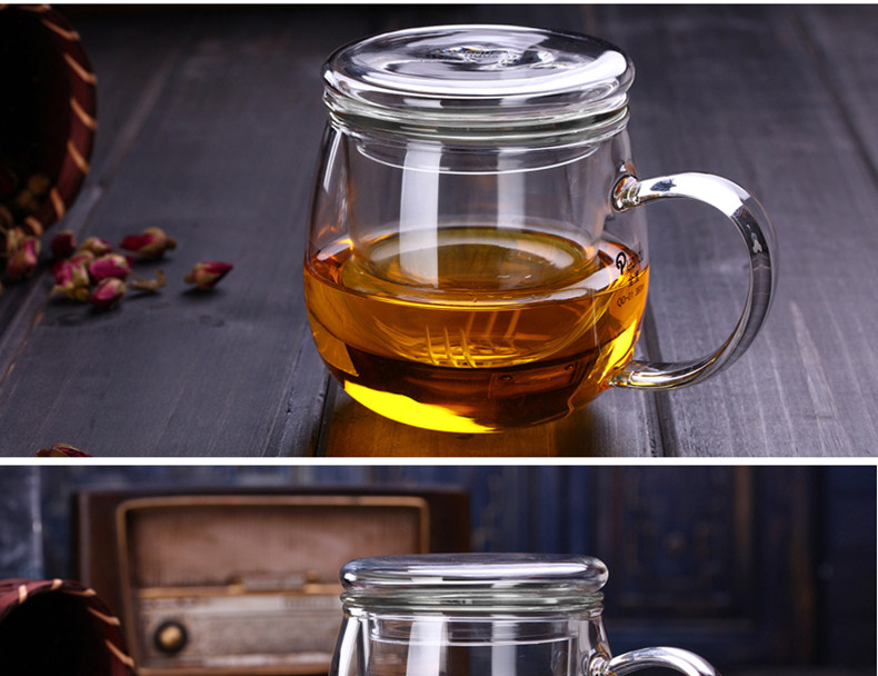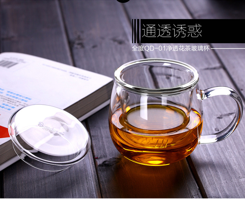 玻璃茶杯子带盖过滤花茶杯透明耐热玻璃杯泡茶水杯喝茶杯家用