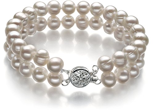 This double white cultured pearl bracelet is the one you have been searching for! Each cultured pearl is carefully hand-matched to create jewelry you will be proud to wear with any evening gown. There is no single word that describes these white cultured pearls. Cultured pearl size is 6 - 7 millimeters in diameter with a strong, brass double clasp for long and elegant wear. This beautiful A quality bracelet features outstanding AA luster, slightly off round AA shape and A body. Your bracelet will be carefully packed and shipped to you in an elegant velvet lined box and accompanied by lots of free extras. And, if you choose, we would be delighted to gift wrap your bracelet and turn this bracelet into an unforgettable gift.