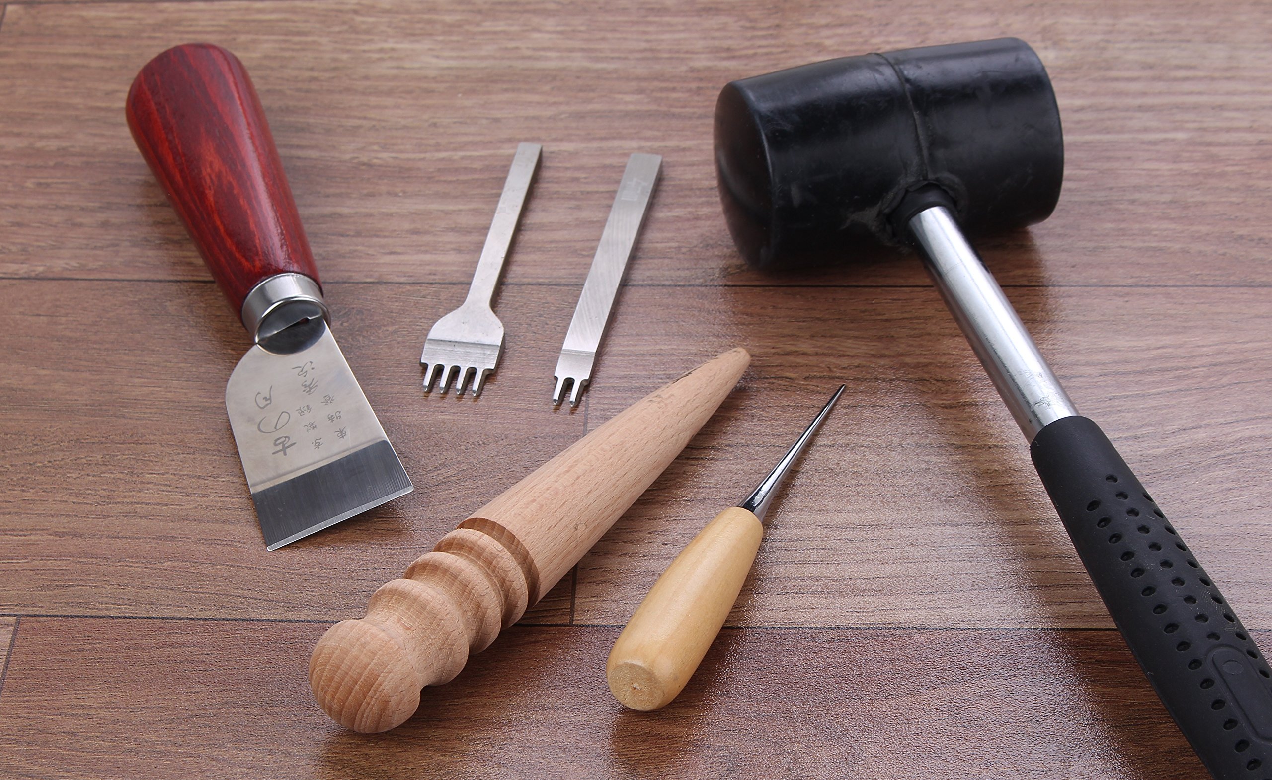 I do not understand good or bad of the tool with a beginner, but it is a feeling after using three small items. Leather knife The sharpness was bad, so it became available to sharpen with a grinding stone. · Two ridges can be used ordinary · Four ridges If you use it for heavy leather, there are fine irregularities on the side of the perforation, it is difficult to get out, and the second line is used. When using it for heavy leather, it takes time to pull out, and it is more expensive to use the second flap. · Maru Gili Ordinary · Hammer Ordinary · Jirakohera Ordinary, when purchasing with commonly seen things it is about 100 yen. · Bonding Since the surface was rough, we used it with sand paper before use. · Sandstick Easy to use, coarse sandpaper is pasted on a plate of wooden wood. It is slightly less. · Hand sewing needle It can be used normally, 10 sorts of different sizes are included. · Hemp (white / brown) 6.5 meters each can be used normally. · Rubber plate It can be used normally, but it smells. Immediately after opening, the room was full of smell, once washed with detergent or dried outside, but it was not improved. When not in use it was kept tightly closed in a bag. · Cutting mat It was packed together with a rubber hammer, so a part was slightly dented. Although I gradually became oblivious while using it, I feel a bit dented. · Felt plate It can be used normally with thick felt.
