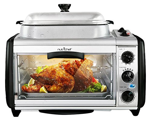 Introducing NutriChef multi-function toaster oven is a great addition to any kitchen, it can broil, bake, toast, keep warm and has a rotisserie function. Healthy rotisserie cooking for delicious poultry or roasts, while eliminating grease. Adjustable temperature control knob from 150° F to 450° F. 60-minute timer control knob with auto shut-off and signal bell. So you will not have to wait around for your large oven anymore, just set the correct temperature and time and you’ll be baking in minutes with different cooking functions. It even has a heat selector function switch. With this many functions in a toaster oven, it is built to make cooking in the kitchen easy and convenient. With the dimensions of 17.7’’ x 16.5’’ x 15.3’’ the capacity of this toaster oven is perfect for your big holiday get-togethers or neighborhood parties. Consistent heating up to 450°F and 1780 watts of power make this countertop toaster oven broiler the ultimate powerhouse! Easy to use, adjustable control knob allow complete control of temperature, timer and toast shade or cooking modes. Choose from a 30-minute timer or a stay-on setting that’s perfect for when you’re batch cooking. There is also a ready bell and automatic shutoff feature. The oven comes with its own pan for broiling or baking, and offers two rack positions for better control when cooking or reheating your food.