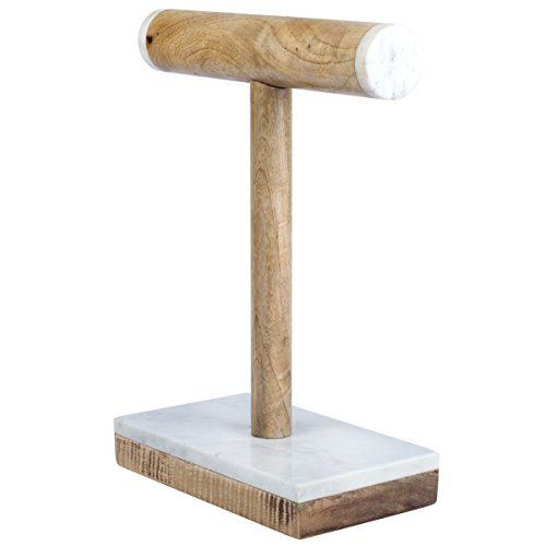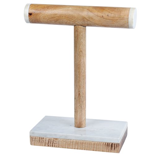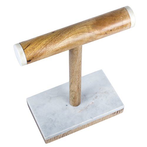 Creative Home 74863 Natural White Marble & Mango Wood Necklace, Bangle bar, Display Stand