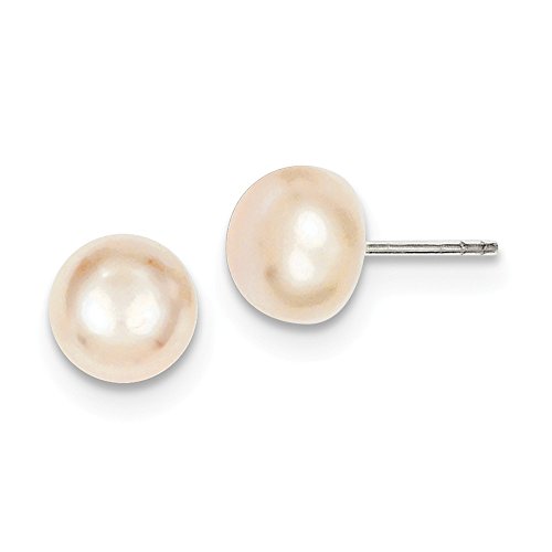 Solid 925 Sterling Silver 9-10mm Peach FW Cultured Pearl Button Earrings