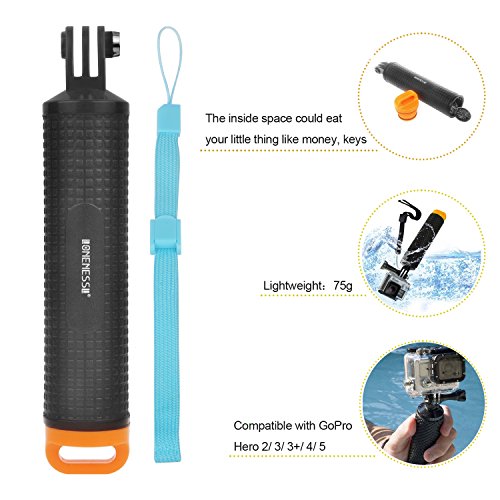 TEXTURED NON-SLIP EVA GRIP HANDLE – The lightweight hand grip is 7 inches tall and only weighs under 0.17lb.it delivers tight grip and extra comfort andallows you capture a variety of angles with increased stability and control ,Suitable for snorkeling, swimming, surfing and other water activities.