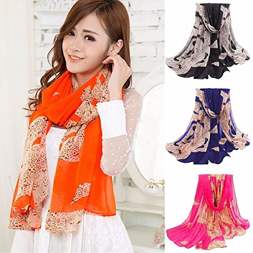 Feature : Women Girls Chiffon Leopard Sun Long Neck Shawl Scarves Stoles Scarf (Random) / If you want to choose, please contact us after ordering. If not, we will random. / (Random)Color Black, Blue, Orange, Rose Red