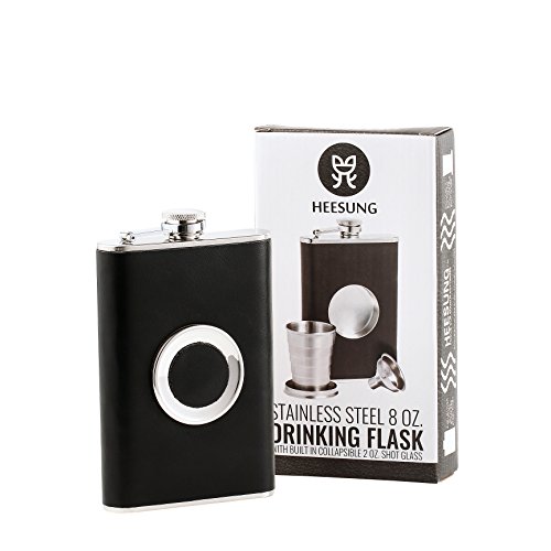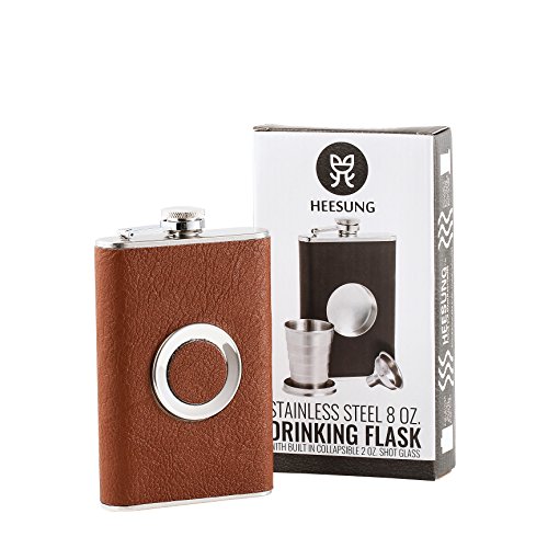 -. Title : Heesung Shot Flask - Stainless Steel 8 Ounce Hip Whiskey Flask Gift Set with a Built-in Collapsible 2 Oz Shot Glass ,Bonus Stainless Steel Flask Funnel - 8 oz Hip Flask With Premium PU Leather