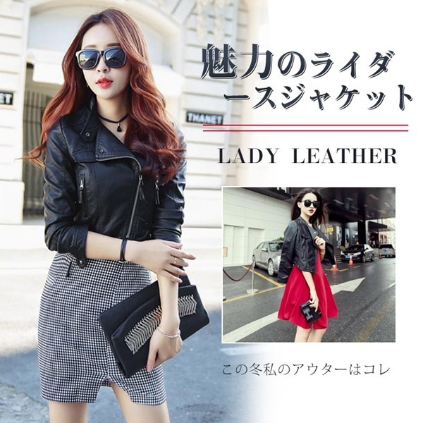 【サイズ】S M L XL 【素 材】PU【カラー】 ブラック女性らしいすっきりとしたサイジングが魅力のライダースジャケット。かっこよくにも可愛くにもなれる、お役立ちアイテムです柔らかく馴染みやすい生地なので着心地も抜群。ヴィンテージ感も同時に楽しむことが出来ます