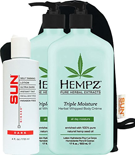 Hempz Triple Moisture Herbal Whipped Body Crème 17 oz 2- Pack + Dark Self tanner 4 oz + Lotion Applicator