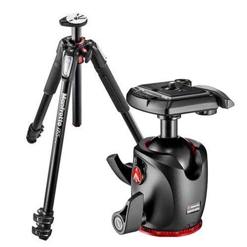 Manfrotto MT055XPRO3 Aluminum 3 Section Tripod with Horizontal Column, 19.84lbs Load Capacity, 66.93" Maximum Height - Bundle With Manfrotto MHXPRO-BHQ2 XPRO Ball Head with Quick-Release