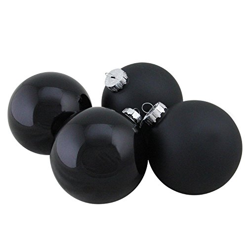 NORTHLIGHT WY00779 Black Glass Ball Christmas Ornament Set, 4"