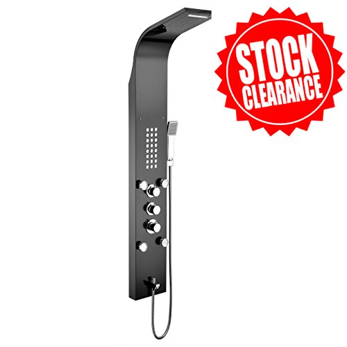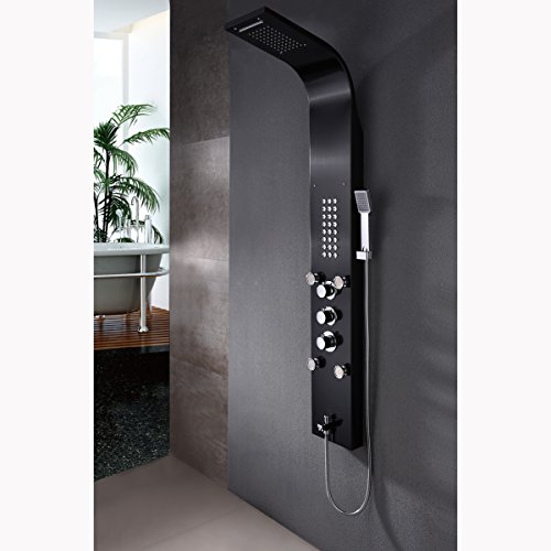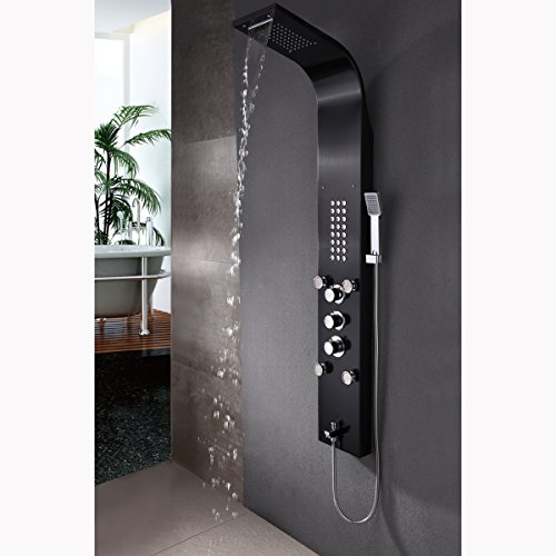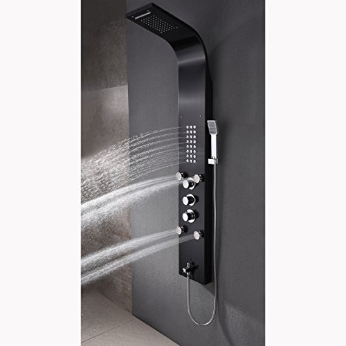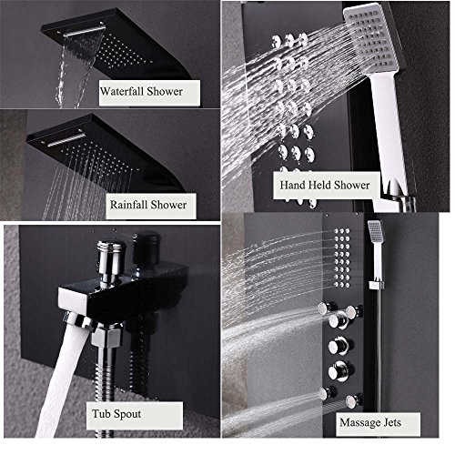 OOFAY Thermostatic Black Plating Stainless Steel Waterfall Rainfall Shower Panels Tower System 59 Inches with Massage Jets Rainfall Shower Water Shower Hand Shower Massage Jets and Tub Spout