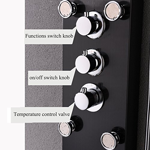 - 60" Thermostatic shower Panel System, 5 functions: overhead rainfall,waterfall,massage jet,handheld shower,tub spout, every function works independent to keep water pressure.