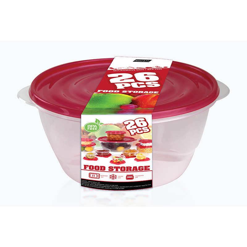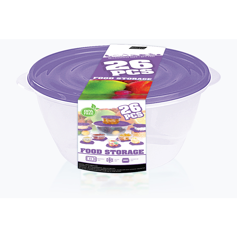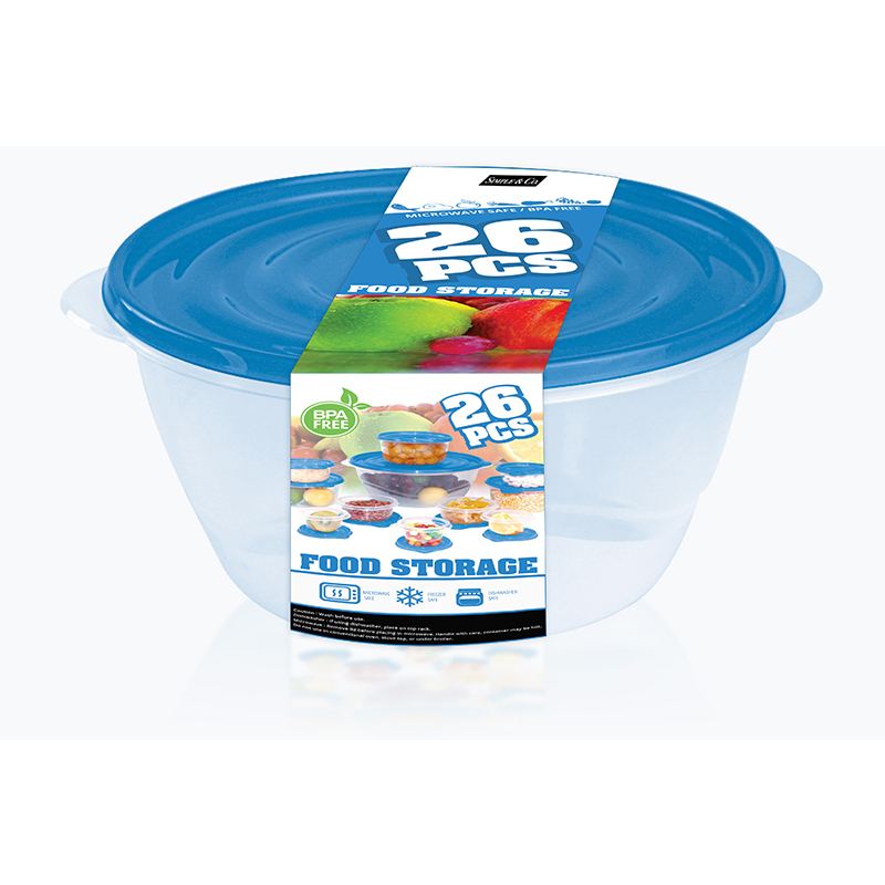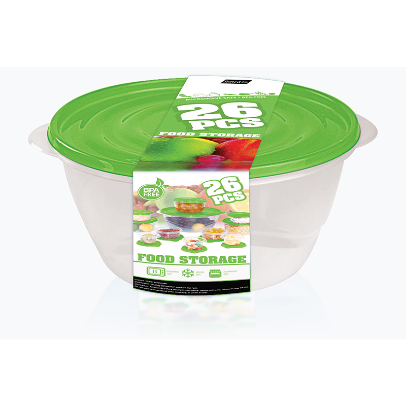 Round Commodities Storage Box- 26PCS / SET, which can store fresh food for a long time. Its unique design, without Bisphenol A and new plastic, Can be used in Microwave ovens and frozen 26PCS