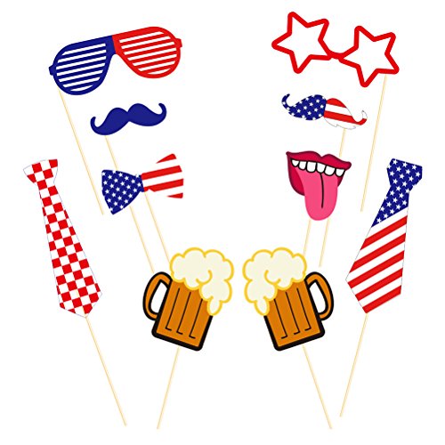 -. Feature : Material: Cardstock wooden. / Package Size: About 28 * 18.5 cm/ 11 * 7.28 inch(L*W). / The package includes clown hats, moustache, eyeglasses, red noses, tie, lips, popcorn and so on. / Happy 4th Of July Photo Booth Props Set. Attached To The Stick. / Colorful masks come attached to the sticks, no DIY required. No mess-no stress. These fun props are perfect for a patriotic party or fourth of July photo booth!