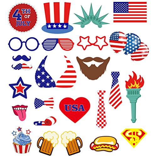 -. Title : BESTOYARD 4th of July Photo Props for American Independence Day Patriotic Photo Booth Props Party Decorations Party Favors 25pcs