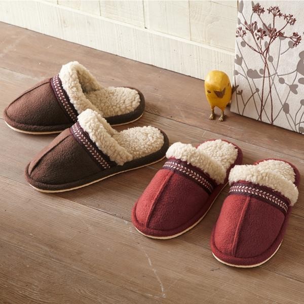 チロリアンテープ風のポイントがかわいい♪もこもこ素材で暖かく過ごせるスリッパです。