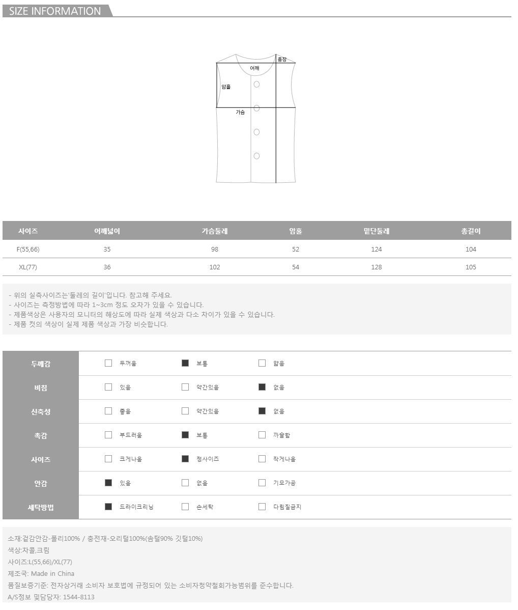 가볍게 입기 좋은 두께감의 패딩 조끼로