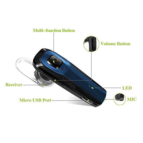 TOORUN M26 Bluetooth Headset V4.1 with Noise Cancelling Mic - Blue