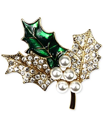 Winter's beauty comes to life in this beautiful pin from Jones New York, featuring a holly branch silhouette with acrylic pearl, glass crystal and green epoxy accents. Crafted in gold-tone mixed metal. Approximate length: 2 inches. Multicolor.Feature