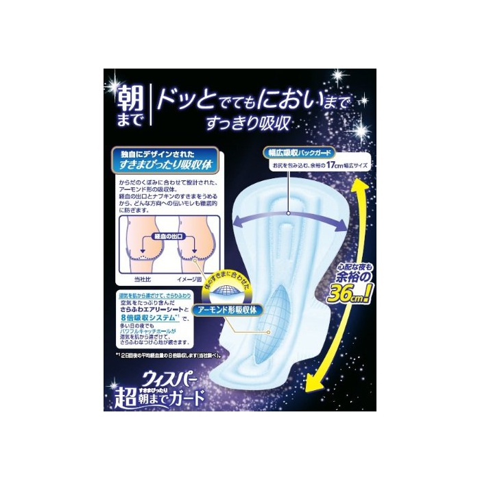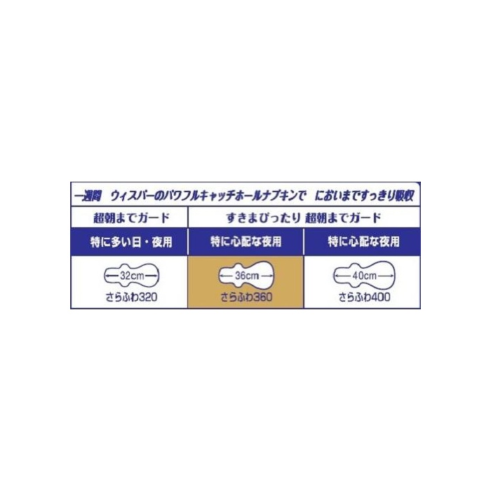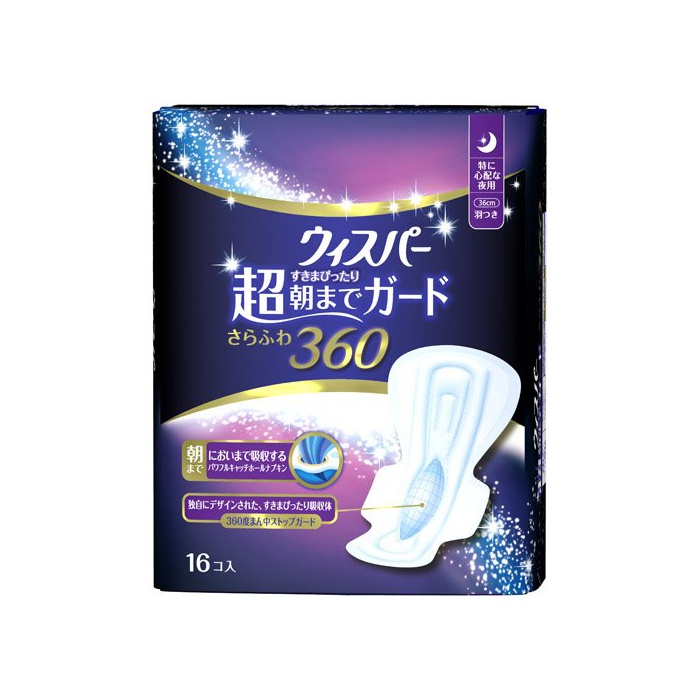 원본상품명: ウィスパ? すきまぴったり超朝までガ?ト? さらふわ360 特に心配な夜用 16コ