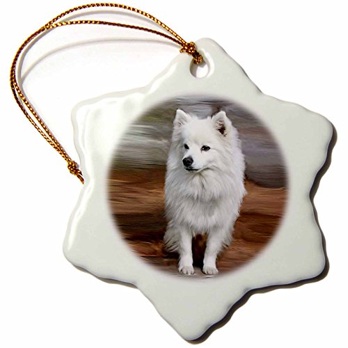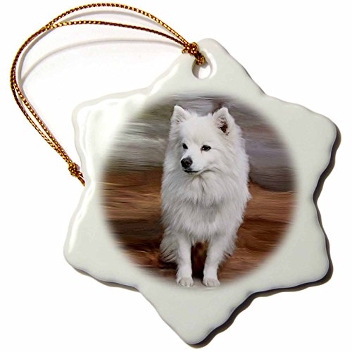 3drose American Eskimo Toy Dog Snowflake Porcelain Ornament, 3-Inch