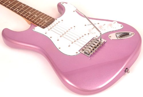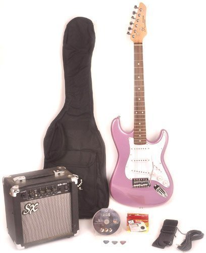Studio : SX Publisher : SX Product Description This complete package includes everything you need: an excellent guitar; a small, portable amp that delivers big sound; an instructional DVD; a bag to protect your guitar when you are not playing; a strap to help you hold your instrument; a 10' cable to connect your guitar to the amp; and a guitar tuner to keep you in tune! This guitar is perfect for many musical styles including rock, jazz, blues, and Christian. The dual cutaway shaped body allows access to the highest frets, and the contoured body makes it comfortable to play for hours. The solid alder wood provides superior sound. Die cast chrome tuners add a touch of class. Three single coil pickups, one volume and two tone controls, plus a five way pickup selector switch create all of today's great sounds. Vintage fulcrum bridge with six adjustable saddles. Maple neck adds stability and is built with a truss rod. (A truss rod is an adjustable neck reinforcement designed to resist the forward bending force of the high tension of steel strings, and is found in the finest of electric guitars.) Rosewood fretboard with 21 jumbo frets. Guitar weighs only 8.5 pounds. Overall length is 39", including the strap button. Scale length is 25.5". Width at the widest point is 13".