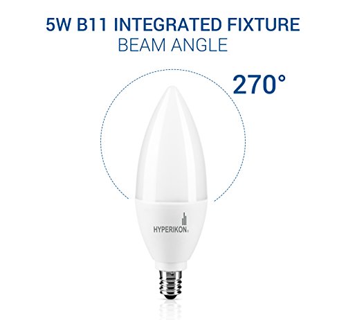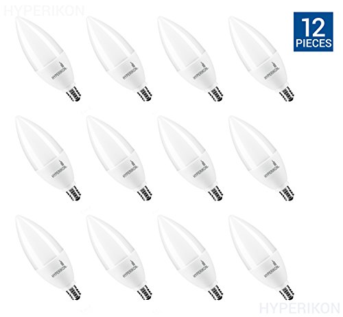 Hyperikon LED Candelabra Bulb B11 Frosted 5W (40W Equivalent), 5000K (Crystal White Glow), Candle Bulb Chandelier, Small Base E12, Not Dimmable - Great for Kitchen, Dining Area, Chandelier (12 Pack)