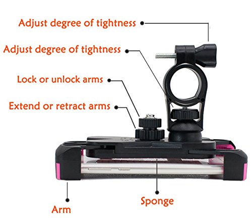 - WIDE APPLICABILITY: The handlebar's diameter in 0.87-1.30 inch can be installed, support 4.5-7 inch of any mobile phone. Four corners claws free retractable, arbitrary size adjustment.