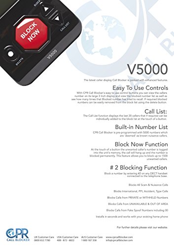 5000 Scam Numbers Pre-Programmed Plus the Ability To Block A Further 1500 Numbers or Area Codes At The Touch Of A Button