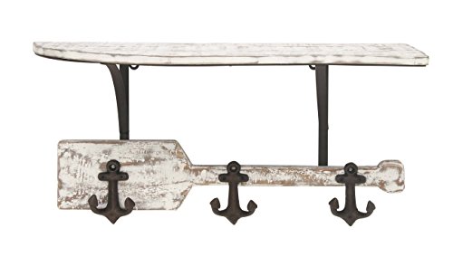 Deco 79 84227 Fir Wood and Iron Wall Shelf with Three Hooks, White/Black