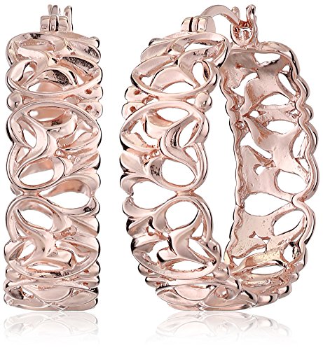 Rose Gold Plated Sterling Silver Filigree Hoop Earrings