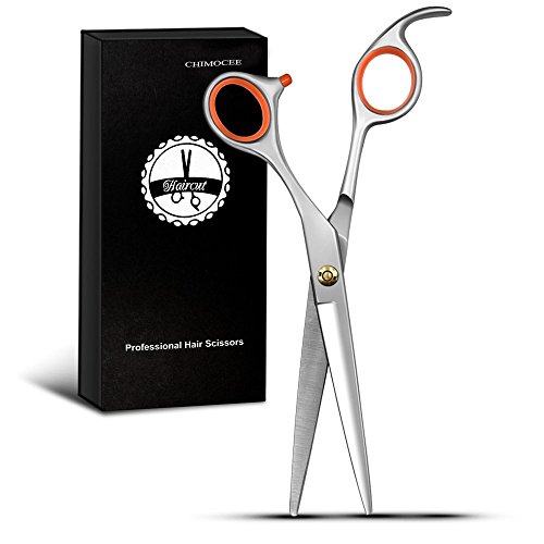 Chimocee Professional Hair Scissors, 6.5" Barber and Salon Razor Edge Hair Cutting Shears with Fine Adjustment Tension Screw-Stainless Steel, Detachable Finger Rest With Black Gift Box