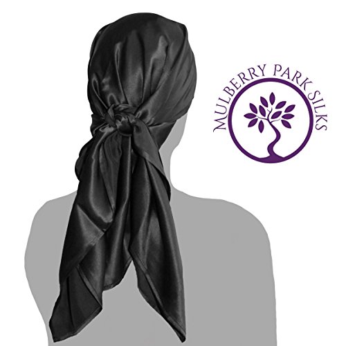 Pure Silk Hair Black Head Scarf, 100% Pure Mulberry Silk, OEKO-TEX Certified, Provides Chemotherapy Comfort and Supports Hair Regrowth