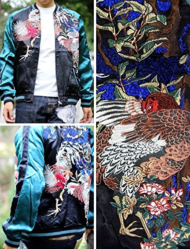 -. Title : 花旅楽団 鶏と紫陽花柄刺繍リバーシブルスカジャン SSJ-018
