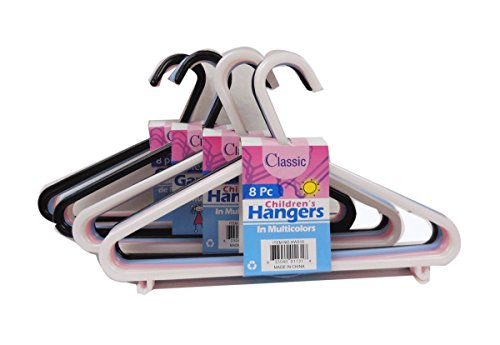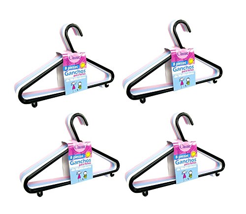 -. Feature : Set of 32pc Plastic Kid Hangers / per order ( 8pc hangers per pack.) / Colors: Baby Blue, White, Baby Pink & Black / Perfect for all of your nursery and storage organization needs! / Great item for donations, raffles, giveaways and more