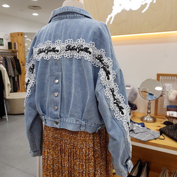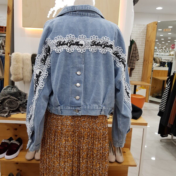 청라이더쟈켓입니다숏한 느낌의 발랄한 디자인으로 레이스가 여성스러우며 뒷태가 넘넘 이쁜 청라이더쟈켓입니다